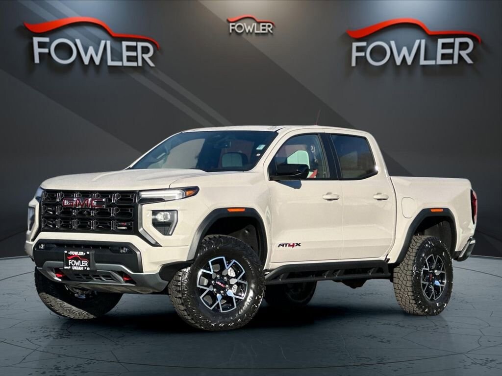 Coastal Dune 2026 GMC Canyon AT4X 4WD 8-Speed Automatic 2.7L I4 Turbocharged DOHC 16V LEV3-SULEV30 310hp 4WD, 120-Volt Bed Mounted Power Outlet, 1st and 2nd Rows All-Weather Floor Liners, 2 1st Row USB Charge/Data Ports, 2 Rear USB Ports in Center Console (Charge-Only), 3.42 Rear Axle Ratio, 4-Wheel Disc Brakes, 6-Way Power Passenger Seat Adjuster, 7 Speakers, 8-Way Power Driver Seat Adjuster, ABS brakes, Adaptive Cruise Control, Air Conditioning, Alloy wheels, AM/FM radio: SiriusXM with 360L, Apple CarPlay/Android Auto, AT4X, Audio System by Kicker, Auto High-beam Headlights, Auto-dimming Rear-View mirror, Automatic Emergency Braking, Automatic Stop/Start, Automatic temperature control, Bedside Utility Walls, Black Finish Sport Upper Bodyside Moldings, Black Off-Road Rocker Protection, Blind Zone Steering Assist with Trailering, Brake assist, Bumpers: body-color, Canyon Pro Safety, Canyon Safety Plus Package, Compass, Delay-off headlights, Driver and Front Passenger Illuminated Visors, Driver and Front Passenger Ventilated Seats, Driver door bin, Driver Memory, Driver Mode Selector, Driver Seatback Map Pocket, Driver vanity mirror, Driver-Selectable Full-Locking Front Differential, Driver-Selectable Full-Locking Rear Differential, Dual front impact airbags, Dual front side impact airbags, Dual-Zone Automatic Climate Control Air Conditioning, Electronic Stability Control, Emergency communication system: OnStar, EZ-Lift and Lower Tailgate, Following Distance Indicator, Forward Collision Alert, Front anti-roll bar, Front Bed Utility Wall, Front Bucket Seats, Front Center Armrest, Front dual zone A/C, Front fog lights, Front LED Fog Lamps, Front License Plate Kit, Front Passenger Seatback Map Pocket, Front Pedestrian and Bicyclist Braking, Front reading lights, Front Side Laminated Solar Glazing Glass, Front wheel independent suspension, HD Surround Vision, Heads-Up Display, Heated door mirrors, Heated Driver and Front Passenger Seats, Heated front seats, Heated Steering Wheel, Heated steering wheel, Illuminated entry, Inside Rear-View Auto-Dimming Mirror, Integrated Trailer Brake Controller, IntelliBeam Automatic High Beam on/Off, Interior Overhead Courtesy Light with Dual Reading Lamp, Lane Keep Assist with Lane Departure Warning, Low tire pressure warning, Memory seat, Multicolor 6.3 Diagonal Head-Up Display, MultiStow Tailgate Storage Compartment, Navigation System, Occupant sensing airbag, Off-Road Suspension, Outside temperature display, Overhead airbag, Overhead console, Panic alarm, Passenger door bin, Passenger vanity mirror, Perforated Leather-Appointed Seat Trim, Power door mirrors, Power Driver Lumbar Control Seat Adjuster, Power driver seat, Power moonroof, Power Passenger Lumbar Control Seat Adjuster, Power passenger seat, Power steering, Power windows, Preferred Equipment Group 4TX, Premium 7-Speaker Bose Sound System, Radio data system, Radio: 11.3 Diagonal Premium GMC Infotainment System, Rear Center Fold-Down Armrest with 2 Cupholders, Rear Cross Traffic Braking, Rear of Console 120-Volt Power Outlet, Rear Pedestrian Alert, Rear reading lights, Rear seat center armrest, Rear step bumper, Rear window defroster, Red Seat Belt Color, Remote keyless entry, Remote Vehicle Starter System, Safety Alert Seat, Security system, SiriusXM with 360L, Speed control, Speed-sensing steering, Split folding rear seat, Spray-on Bedliner with GMC Logo, Steering wheel mounted audio controls, Stop/Start System Disable Button Engine Control, Tachometer, Tailgate Keyed Cylinder Lock, Telescoping steering wheel, Til and Telescopic Manual Steering Column, Tilt steering wheel, Traction control, Trailering App System, Trailering Package, Trip computer, Ultrasonic Rear Park Assist, Underbody Cameras, Utility Wall Latch Kit, Utility Wall Package, Utility Wall Strap Kit, Variably intermittent wipers, Ventilated front seats, Wheels: 17 x 8 Black High Gloss Machined Finish, Wireless Apple CarPla