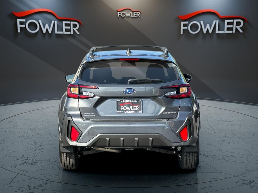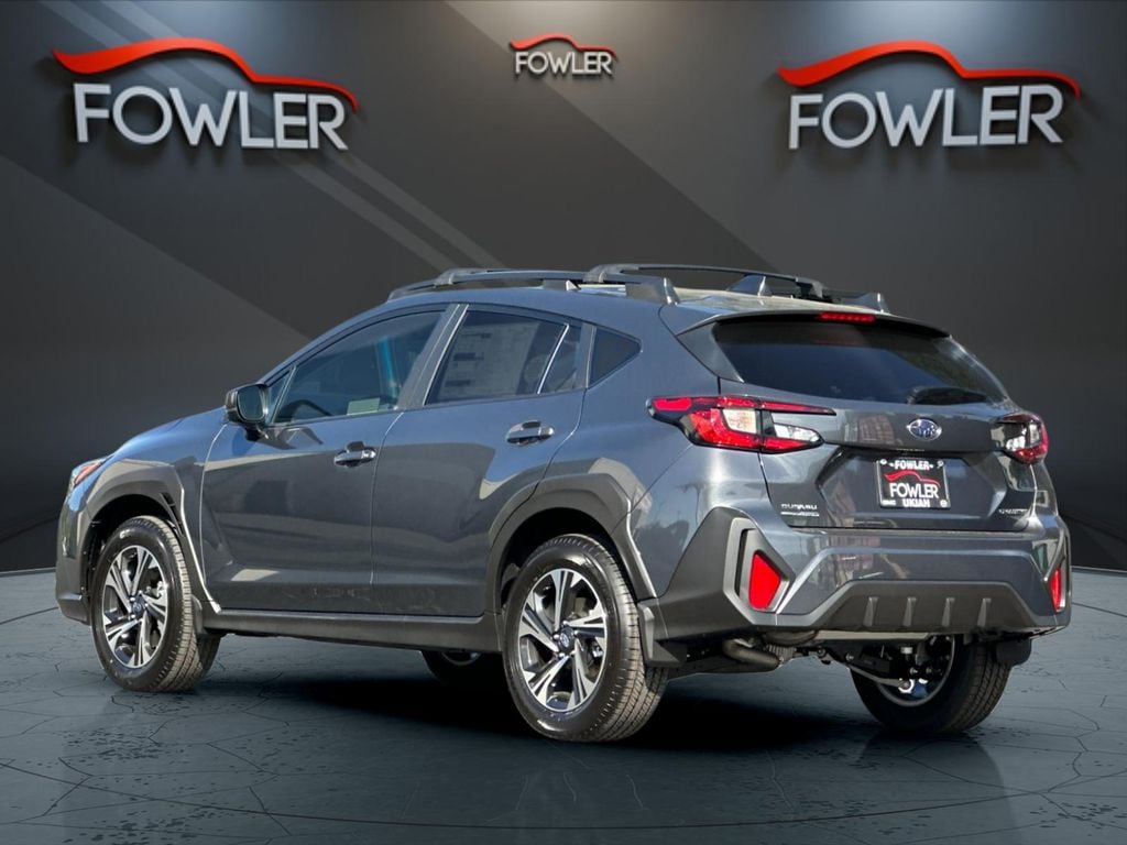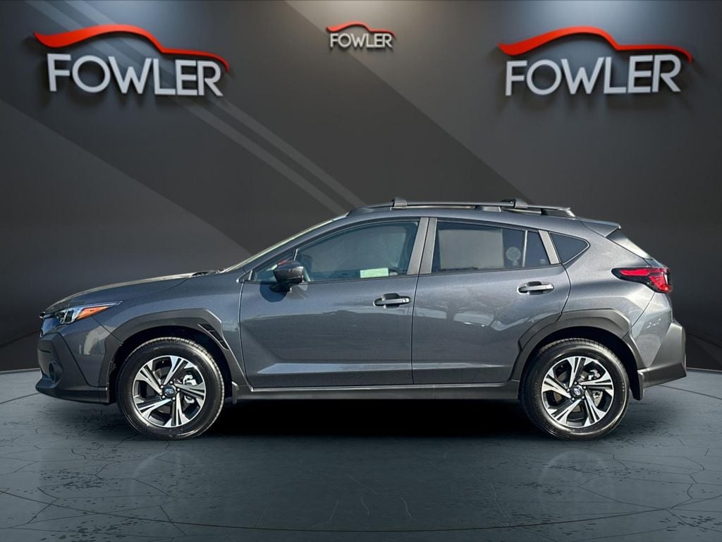 Gray Pearl 2025 Subaru Crosstrek Premium AWD Lineartronic CVT 2.5L 4-Cylinder DOHC 16V 4-Wheel Disc Brakes, 6 Speakers, ABS brakes, Air Conditioning, Alloy wheels, AM/FM radio: SiriusXM, Anti-whiplash front head restraints, Auto High-beam Headlights, Automatic temperature control, Brake assist, Bumpers: body-color, Cloth Upholstery, Driver door bin, Driver vanity mirror, Dual front impact airbags, Dual front side impact airbags, Electronic Stability Control, Emergency communication system, Exterior Parking Camera Rear, Four wheel independent suspension, Front anti-roll bar, Front Bucket Seats, Front Center Armrest, Front dual zone A/C, Front fog lights, Front reading lights, Fully automatic headlights, Illuminated entry, Knee airbag, Low tire pressure warning, Occupant sensing airbag, Outside temperature display, Overhead airbag, Overhead console, Panic alarm, Passenger door bin, Passenger vanity mirror, Power door mirrors, Power steering, Power windows, Radio data system, Radio: Subaru 11.6" Multimedia Plus System, Rear anti-roll bar, Rear seat center armrest, Rear window defroster, Rear window wiper, Remote keyless entry, Security system, Speed control, Speed-sensing steering, Split folding rear seat, Spoiler, Steering wheel mounted audio controls, Tachometer, Telescoping steering wheel, Tilt steering wheel, Traction control, Trip computer, Turn signal indicator mirrors, Variably intermittent wipers, Wheels: 17" x 7.0" J Machine Finish Aluminum-Alloy.