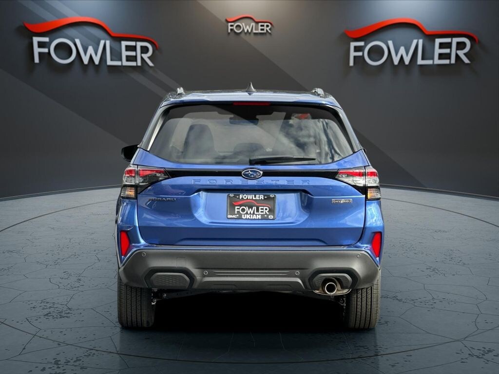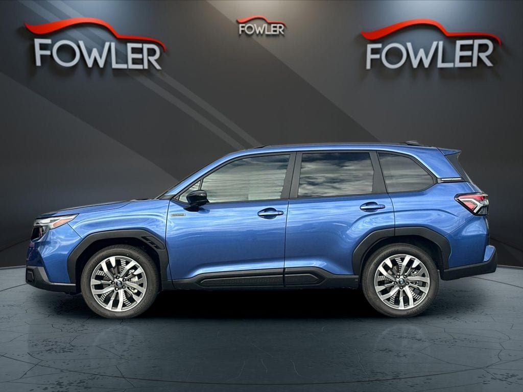 Daybreak Blue Pearl 2025 Subaru Forester Hybrid Touring AWD Lineartronic CVT 2.5L 4-Cylinder DOHC 16V 2.5L 4-Cylinder DOHC 16V, 11 Speakers, 4-Wheel Disc Brakes, ABS brakes, Air Conditioning, Alloy wheels, AM/FM radio: SiriusXM with 360L, Anti-whiplash front head restraints, Auto High-beam Headlights, Automatic temperature control, Brake assist, Bumpers: body-color, Center Console Tray, Compass, Driver door bin, Driver vanity mirror, Dual front impact airbags, Dual front side impact airbags, Electronic Stability Control, Emergency communication system: MySubaru Safety (3-year free trial), Exterior Parking Camera Rear, Four wheel independent suspension, Front anti-roll bar, Front Bucket Seats, Front Center Armrest, Front dual zone A/C, Front fog lights, Front reading lights, Fully automatic headlights, harman/kardon® Speakers, Heated and Ventilated Front Bucket Seats, Heated door mirrors, Heated front seats, Heated rear seats, Heated steering wheel, HVAC memory, Illuminated entry, Knee airbag, LED Upgrade, Low tire pressure warning, Memory seat, Navigation system: TomTom Navigation w/what3words, Occupant sensing airbag, Outside temperature display, Overhead airbag, Overhead console, Panic alarm, Passenger door bin, Passenger vanity mirror, Perforated Leather-Trimmed Upholstery, Power door mirrors, Power driver seat, Power Liftgate, Power moonroof: Panoramic, Power passenger seat, Power steering, Power windows, Radio data system, Radio: Subaru 11.6" Multimedia Navigation System, Rear anti-roll bar, Rear Bumper Cover, Rear seat center armrest, Rear Seatback Protector, Rear window defroster, Rear window wiper, Remote keyless entry, Security system, Speed control, Speed-sensing steering, Split folding rear seat, Spoiler, Standard Model, Steering wheel mounted audio controls, Sunshade - Windshield, Tachometer, Telescoping steering wheel, Tilt steering wheel, Traction control, Trip computer, Turn signal indicator mirrors, Variably intermittent wipers, Ventilated front seats, Wheels: 19" x 7.5 J Dark Gray Aluminum-Alloy, 2.5L 4-Cylinder DOHC 16V.