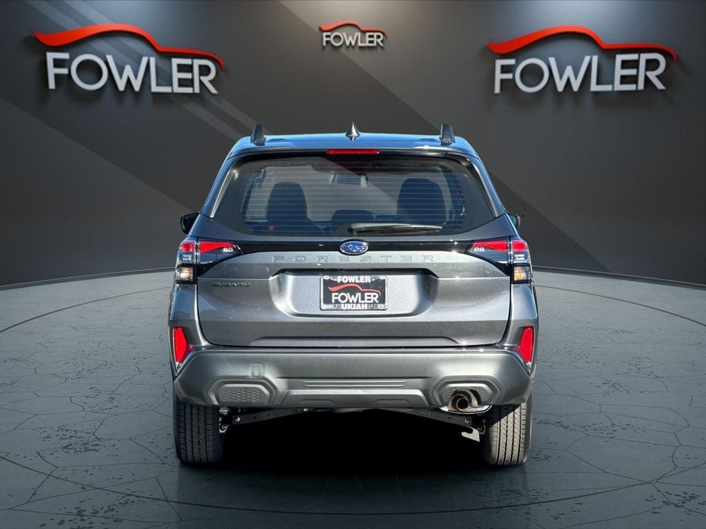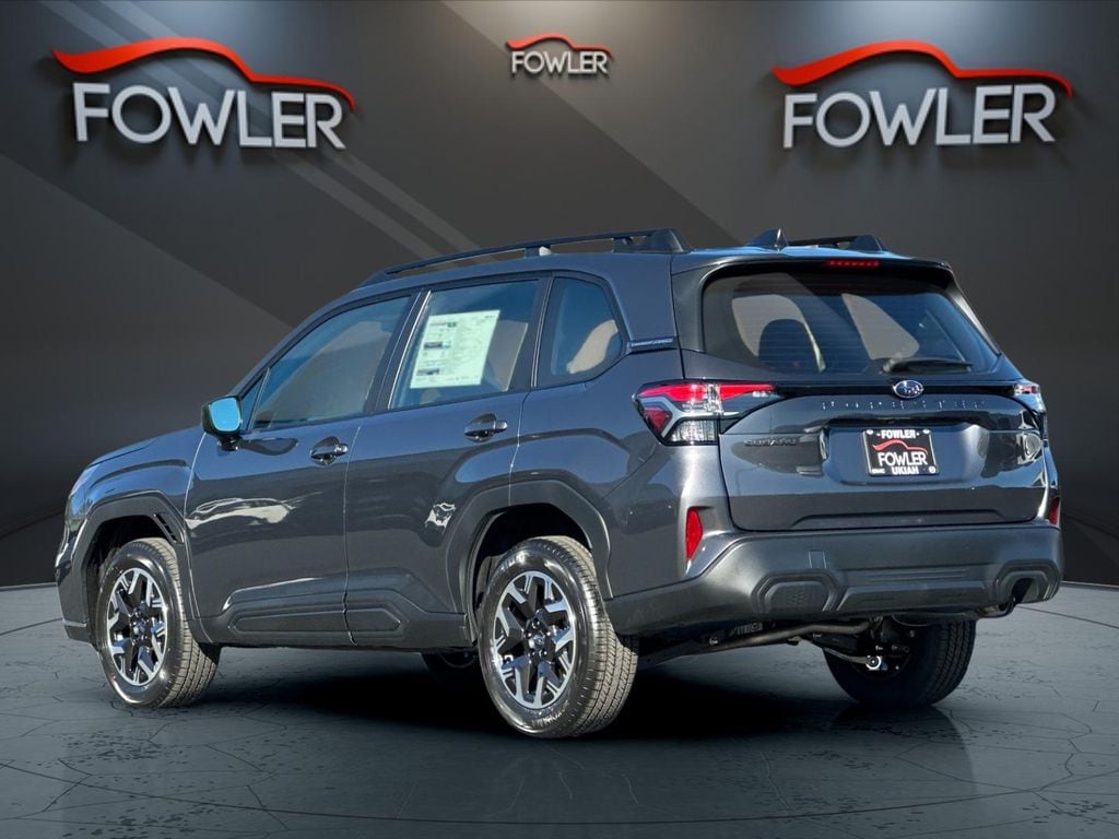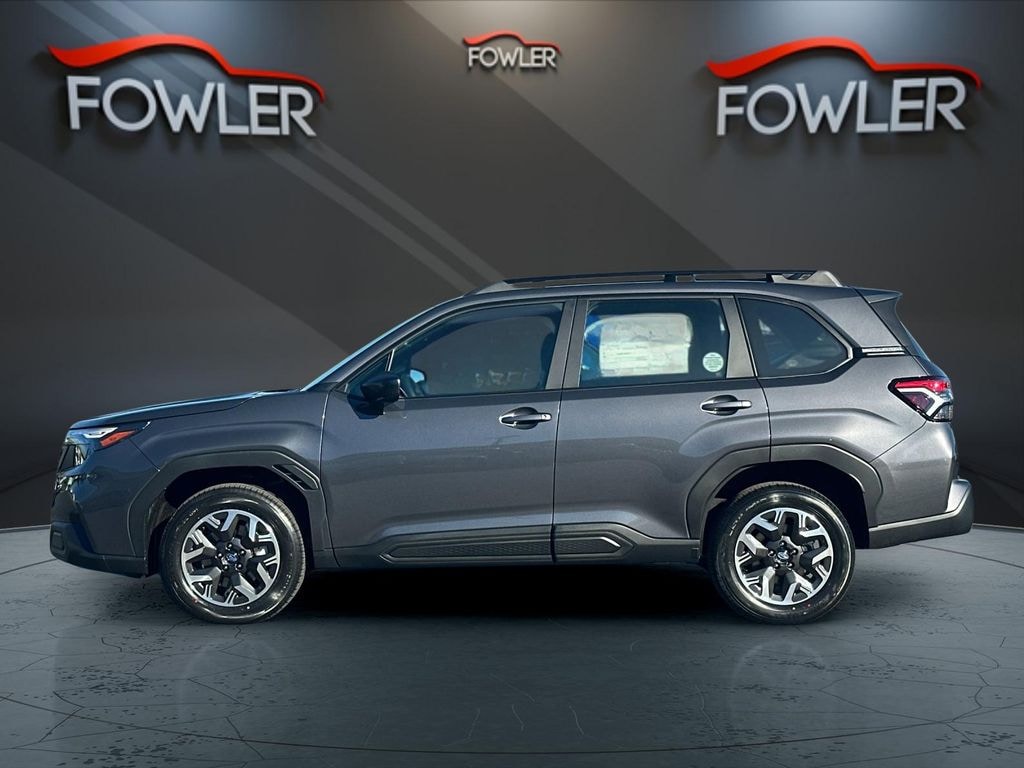 Gray Metallic 2026 Subaru Forester AWD Lineartronic CVT 2.5L 4-Cylinder DOHC 16V 4 Speakers, 4-Wheel Disc Brakes, ABS brakes, Air Conditioning, Alloy wheels, AM/FM radio: SiriusXM, Anti-whiplash front head restraints, Auto High-beam Headlights, Automatic temperature control, Brake assist, Bumpers: body-color, Driver door bin, Driver vanity mirror, Dual front impact airbags, Dual front side impact airbags, Electronic Stability Control, Exterior Parking Camera Rear, Four wheel independent suspension, Front anti-roll bar, Front Bucket Seats, Front Center Armrest, Front dual zone A/C, Front reading lights, Fully automatic headlights, Hexagonal Patterned Cloth Upholstery, Illuminated entry, Knee airbag, Low tire pressure warning, Occupant sensing airbag, Outside temperature display, Overhead airbag, Overhead console, Panic alarm, Passenger door bin, Passenger vanity mirror, Power door mirrors, Power steering, Power windows, Radio data system, Radio: Subaru Dual 7.0" Multimedia System, Rear anti-roll bar, Rear window defroster, Rear window wiper, Remote keyless entry, Security system, Speed control, Speed-sensing steering, Split folding rear seat, Spoiler, Steering wheel mounted audio controls, Tachometer, Telescoping steering wheel, Tilt steering wheel, Traction control, Trip computer, Variably intermittent wipers, Wheels: 17" x 7.0 J Dark Metallic Aluminum-Alloy.
