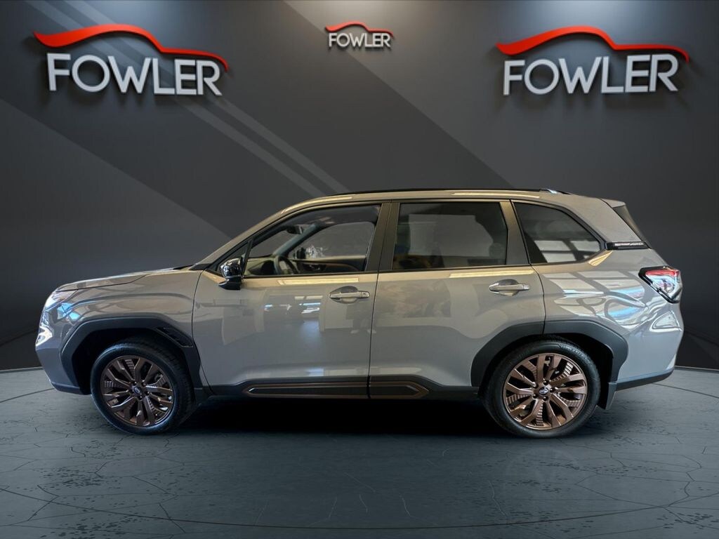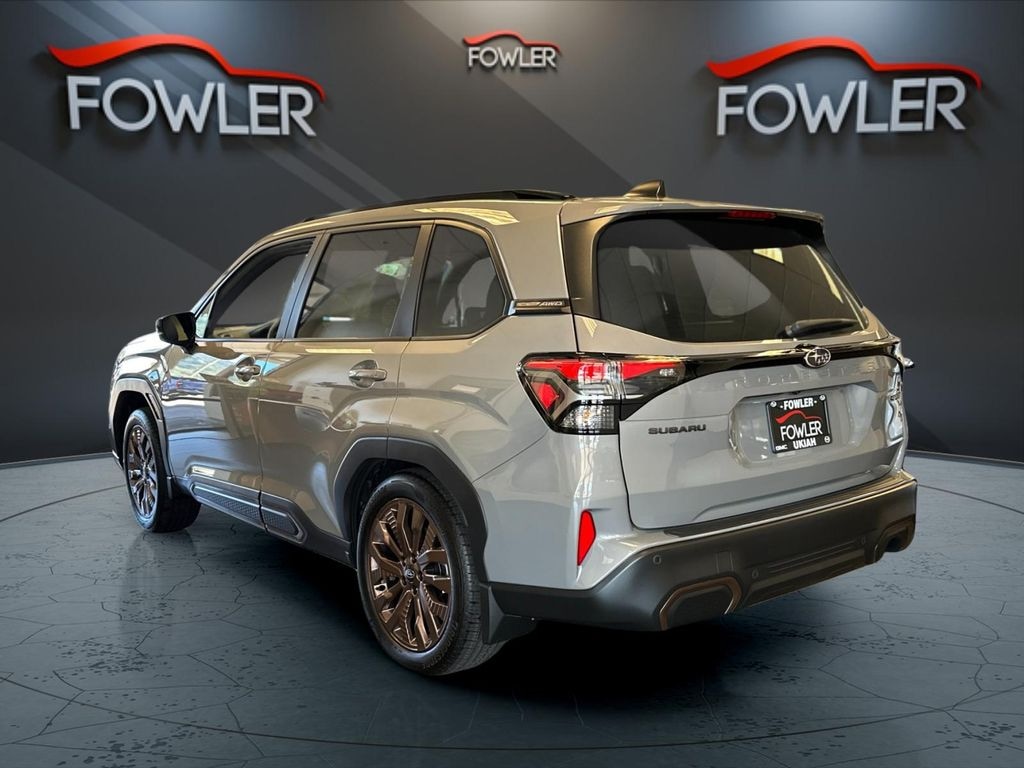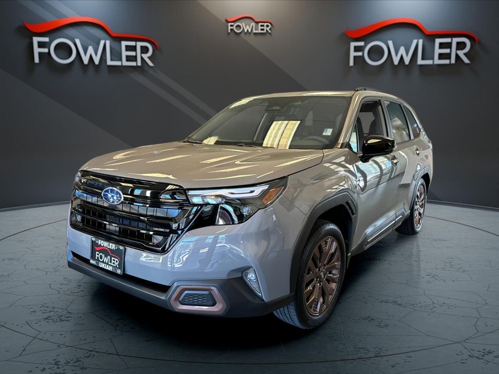 River Rock Pearl 2026 Subaru Forester Sport AWD Lineartronic CVT 2.5L 4-Cylinder DOHC 16V 4-Wheel Disc Brakes, 6 Speakers, ABS brakes, Air Conditioning, Alloy wheels, AM/FM radio: SiriusXM with 360L, Anti-whiplash front head restraints, Auto High-beam Headlights, Auto-Dimming Mirror with Compass and HomeLink, Automatic temperature control, Brake assist, Bumpers: body-color, Driver door bin, Driver vanity mirror, Dual front impact airbags, Dual front side impact airbags, Electronic Stability Control, Emergency communication system: MySubaru Companion (5-years free), Exterior Parking Camera Rear, Four wheel independent suspension, Front anti-roll bar, Front Bucket Seats, Front Center Armrest, Front dual zone A/C, Front fog lights, Front reading lights, Fully automatic headlights, Harman/Kardon Speaker System, Harman/Kardon Speaker System and Power Rear Gate and Reverse Automatic Braking, Heated door mirrors, Heated Front Bucket Seats, Heated front seats, Illuminated entry, Knee airbag, Leather steering wheel, LED Upgrade, Low tire pressure warning, Occupant sensing airbag, Outside temperature display, Overhead airbag, Overhead console, Panic alarm, Passenger door bin, Passenger vanity mirror, Power door mirrors, Power driver seat, Power moonroof: Panoramic, Power Rear Gate, Power steering, Power windows, Radio data system, Radio: Subaru 11.6" Multimedia Plus System, Rear anti-roll bar, Rear Bumper Cover, Rear seat center armrest, Rear Seatback Protector, Rear window defroster, Rear window wiper, Remote keyless entry, Reverse Automatic Braking (RAB) System, Security system, SI-Drive Dual-Mode Engine Performance Management, Speed control, Speed-sensing steering, Splash Guards, Split folding rear seat, Spoiler, Sport Package, Sport StarTex Upholstery, Steering wheel mounted audio controls, Tachometer, Telescoping steering wheel, Tilt steering wheel, Traction control, Trip computer, Turn signal indicator mirrors, Variably intermittent wipers, Wheels: 19" x 7.5 J Bronze Finish Aluminum-Alloy.