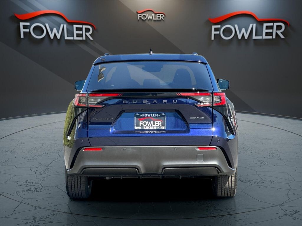 Midnight 2026 Subaru Solterra AWD 1-Speed Automatic Electric Motor 4-Wheel Disc Brakes, ABS brakes, Air Conditioning, Alloy wheels, AM/FM radio: SiriusXM, Apple CarPlay & Android Auto, Auto High-beam Headlights, Auto-dimming Rear-View mirror, Automatic temperature control, Brake assist, Bumpers: body-color, Driver door bin, Driver vanity mirror, Dual front impact airbags, Dual front side impact airbags, Electronic Stability Control, Emergency communication system, Exterior Parking Camera Rear, Four wheel independent suspension, Front anti-roll bar, Front Bucket Seats, Front Center Armrest, Front dual zone A/C, Front reading lights, Fully automatic headlights, Garage door transmitter: HomeLink, Headlight cleaning, Heated door mirrors, Heated front seats, Illuminated entry, Knee airbag, Leather steering wheel, Low tire pressure warning, Navigation System, Occupant sensing airbag, Outside temperature display, Overhead airbag, Overhead console, Panic alarm, Passenger door bin, Passenger vanity mirror, Power door mirrors, Power driver seat, Power Liftgate, Power steering, Power windows, Radio data system, Radio: : Subaru 14" Multimedia System, Rain sensing wipers, Rear anti-roll bar, Rear reading lights, Rear seat center armrest, Rear window defroster, Remote keyless entry, Security system, Speed control, Speed-sensing steering, Split folding rear seat, Spoiler, Steering wheel mounted audio controls, Telescoping steering wheel, Tilt steering wheel, Traction control, Trip computer, Turn signal indicator mirrors, Variably intermittent wipers.
