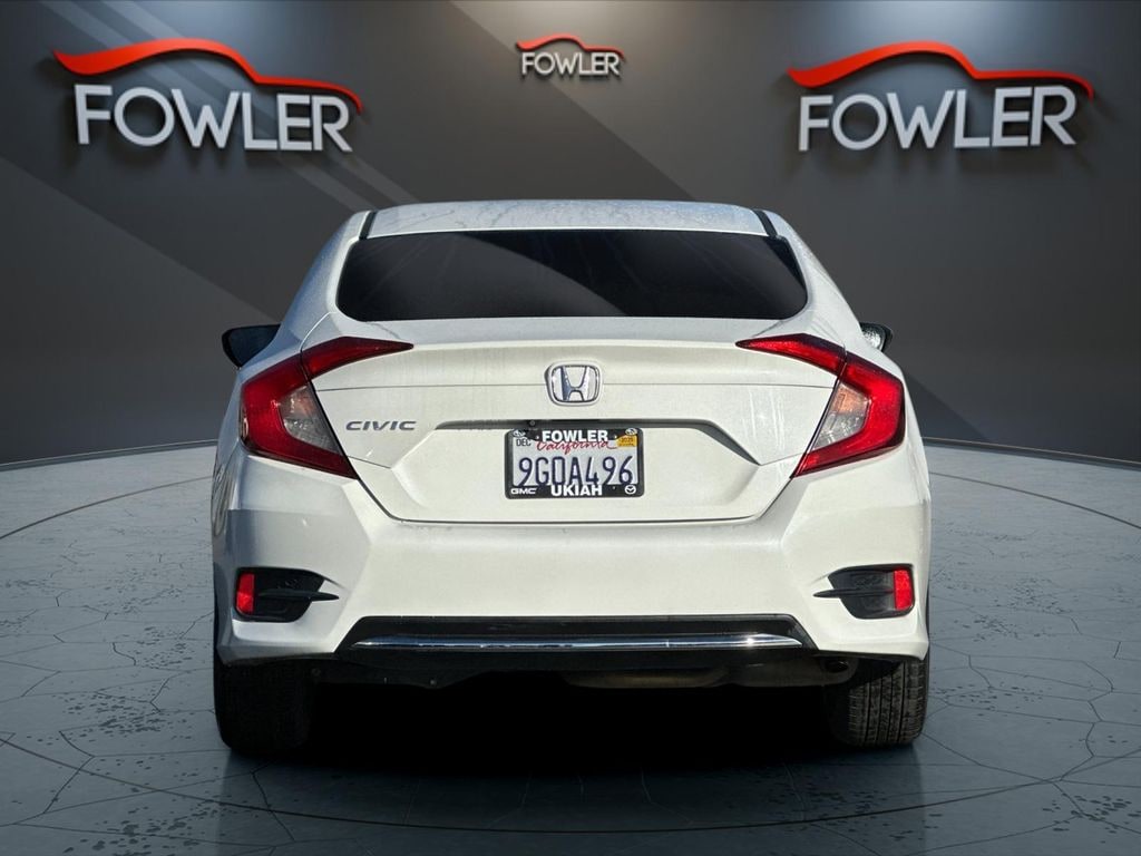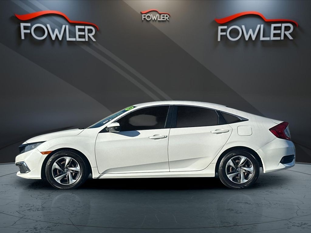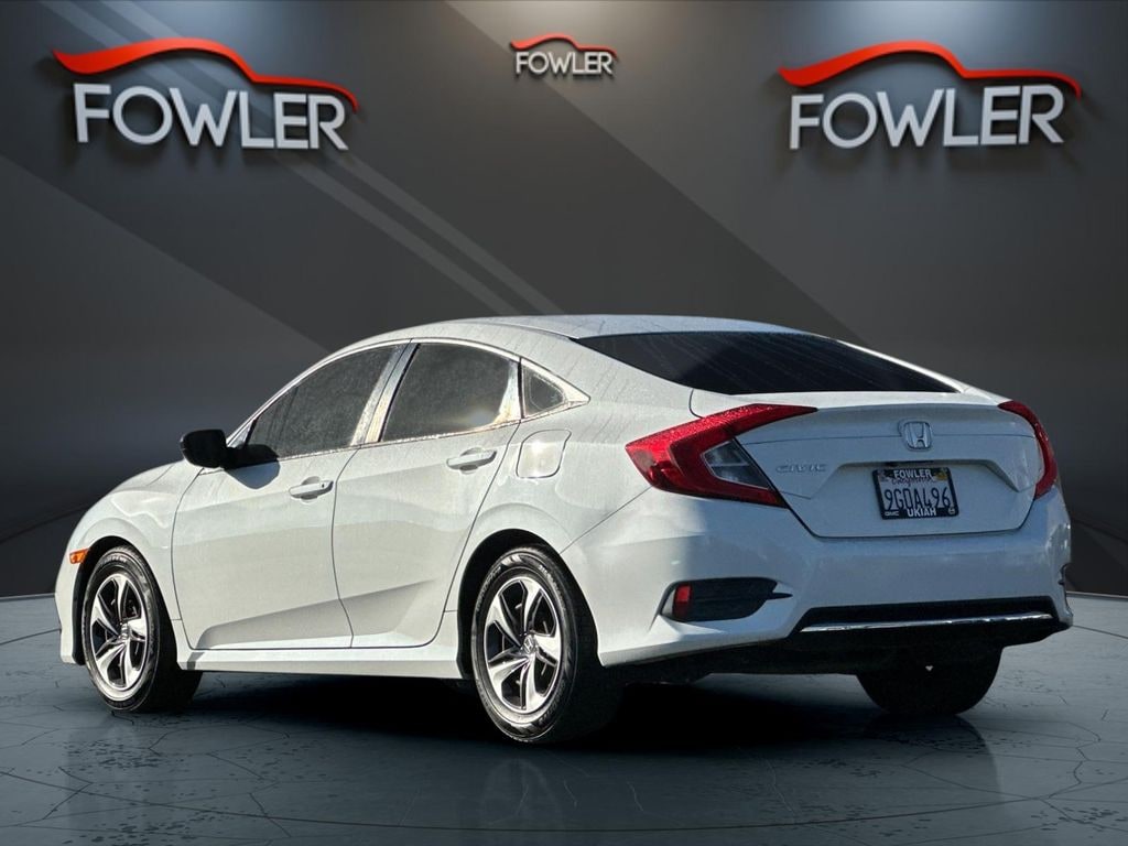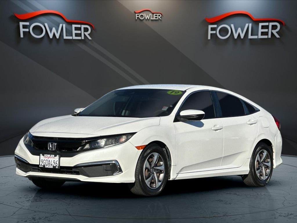White 2019 Honda Civic LX FWD CVT 2.0L I4 DOHC 16V i-VTEC Cloth, 16" Wheels w/Full Covers, 4 Speakers, 4-Wheel Disc Brakes, ABS brakes, Air Conditioning, AM/FM radio, Auto High-beam Headlights, Automatic temperature control, Brake assist, Bumpers: body-color, Cloth Seat Trim, Delay-off headlights, Driver door bin, Driver vanity mirror, Dual front impact airbags, Dual front side impact airbags, Electronic Stability Control, Exterior Parking Camera Rear, Forward collision: Collision Mitigation Braking System (CMBS) + FCW mitigation, Four wheel independent suspension, Front anti-roll bar, Front Bucket Seats, Front Center Armrest, Front reading lights, Fully automatic headlights, Illuminated entry, Lane departure: Lane Keeping Assist System (LKAS) active, Low tire pressure warning, Occupant sensing airbag, Outside temperature display, Overhead airbag, Panic alarm, Passenger door bin, Passenger vanity mirror, Power door mirrors, Power steering, Power windows, Radio data system, Radio: 160-Watt AM/FM Audio System, Rear anti-roll bar, Rear window defroster, Remote keyless entry, Security system, Speed control, Speed-sensing steering, Steering wheel mounted audio controls, Tachometer, Telescoping steering wheel, Tilt steering wheel, Traction control, Trip computer, Cloth.