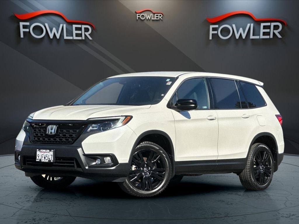 White 2019 Honda Passport Sport AWD 9-Speed Automatic 3.5L V6 24V SOHC i-VTEC 4-Wheel Disc Brakes, 4.334 Axle Ratio, 7 Speakers, ABS brakes, Air Conditioning, Alloy wheels, AM/FM radio, Auto High-beam Headlights, Automatic temperature control, Brake assist, Bumpers: body-color, Cloth Seat Trim, Delay-off headlights, Driver door bin, Driver vanity mirror, Driver's Seat Mounted Armrest, Dual front impact airbags, Dual front side impact airbags, Electronic Stability Control, Emergency communication system, Exterior Parking Camera Rear, Forward collision: Collision Mitigation Braking System (CMBS) + FCW mitigation, Four wheel independent suspension, Front anti-roll bar, Front Bucket Seats, Front Center Armrest, Front dual zone A/C, Front fog lights, Front reading lights, Fully automatic headlights, Illuminated entry, Lane departure: Lane Keeping Assist System (LKAS) active, Low tire pressure warning, Occupant sensing airbag, Outside temperature display, Overhead airbag, Overhead console, Panic alarm, Passenger door bin, Passenger seat mounted armrest, Passenger vanity mirror, Power door mirrors, Power steering, Power windows, Radio data system, Radio: 215-Watt Audio System w/7 Speakers, Rear air conditioning, Rear anti-roll bar, Rear reading lights, Rear seat center armrest, Rear window defroster, Rear window wiper, Remote keyless entry, Security system, Speed control, Speed-sensing steering, Split folding rear seat, Spoiler, Steering wheel mounted audio controls, Tachometer, Telescoping steering wheel, Tilt steering wheel, Traction control, Trip computer, Variably intermittent wipers, Wheels: 20" Split-Spoke Gloss Black Alloy.