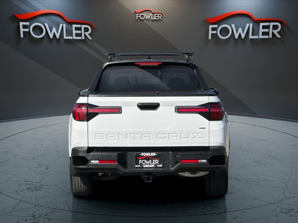 Atlas White 2024 Hyundai Santa Cruz SEL AWD 8-Speed Automatic with SHIFTRONIC 2.5L I4 10.25" Digital Instrument Cluster, 115V AC Power Inverter in Bed, 15W Wireless Phone, 18" x 7.5J Alloy Wheels, 4-Wheel Disc Brakes, 4.081 Axle Ratio, 6 Speakers, ABS brakes, Activity Package, Air Conditioning, Alloy wheels, AM/FM radio: SiriusXM, Apple CarPlay & Android Auto, Auto High-beam Headlights, Auto-leveling suspension, Automatic temperature control, Brake assist, Bumpers: body-color, Carpeted Floor Mats, Conventional Power Sunroof, Delay-off headlights, Driver door bin, Driver vanity mirror, Dual C-Channel Utility Tracks on Bed Side, Dual front impact airbags, Dual front side impact airbags, Electronic Stability Control, Emergency communication system: Bluelink+, Envelope Cargo Net, Exterior Parking Camera Rear, Four wheel independent suspension, Front anti-roll bar, Front Bucket Seats, Front Center Armrest, Front dual zone A/C, Front reading lights, Fully automatic headlights, Heated door mirrors, Heated Front Bucket Seats, Heated front seats, Illuminated entry, Integrated Tonneau Cover, LED Bed Lighting, LED Front & Rear Interior Lights, Low tire pressure warning, Mud Guards, Occupant sensing airbag, Option Group 02, Outside temperature display, Overhead airbag, Overhead console, Panic alarm, Passenger door bin, Passenger vanity mirror, Power door mirrors, Power driver seat, Power steering, Power windows, Radio data system, Radio: AM/FM/HD Audio System, Radio: AM/FM/HD Audio System (P2), Rear anti-roll bar, Rear side impact airbag, Rear Sliding Glass Window w/Defroster, Rear step bumper, Rear window defroster, Remote keyless entry, Roof Rack Cross Rails, Roof Side Rails, Security system, Speed control, Speed-sensing steering, Split folding rear seat, Spoiler, Stain & Odor Resistant Cloth Seat Trim, Steering wheel mounted audio controls, Tachometer, Telescoping steering wheel, Tilt steering wheel, Traction control, Trip computer, Turn signal indicator mirrors, Variably intermittent wipers.