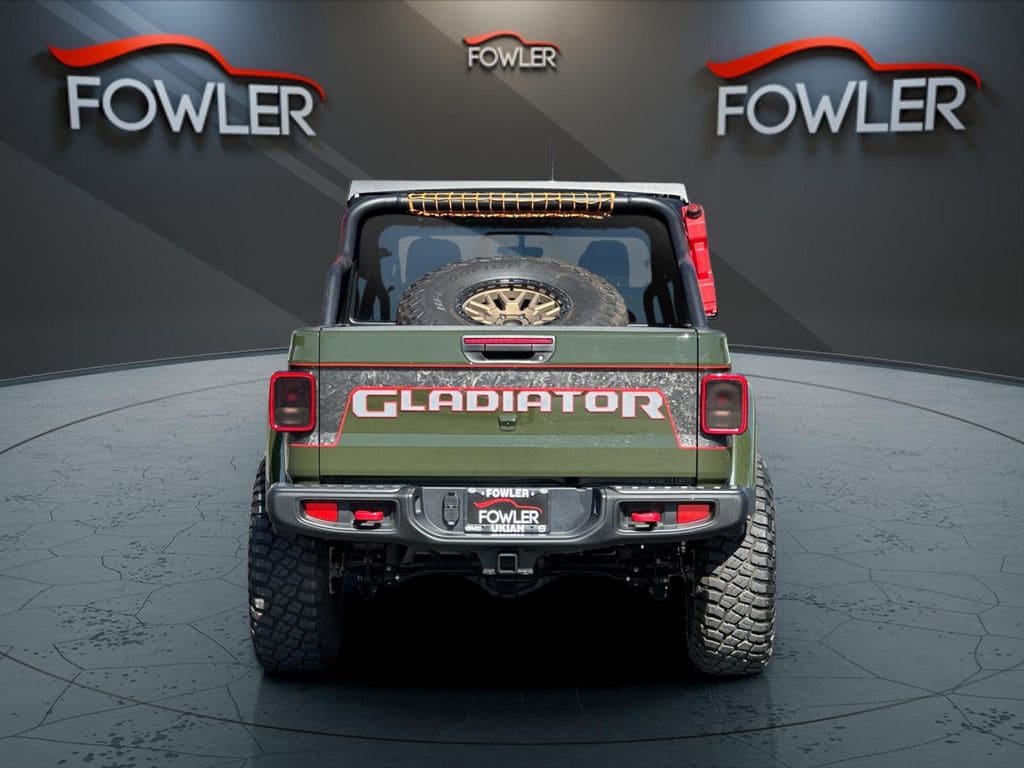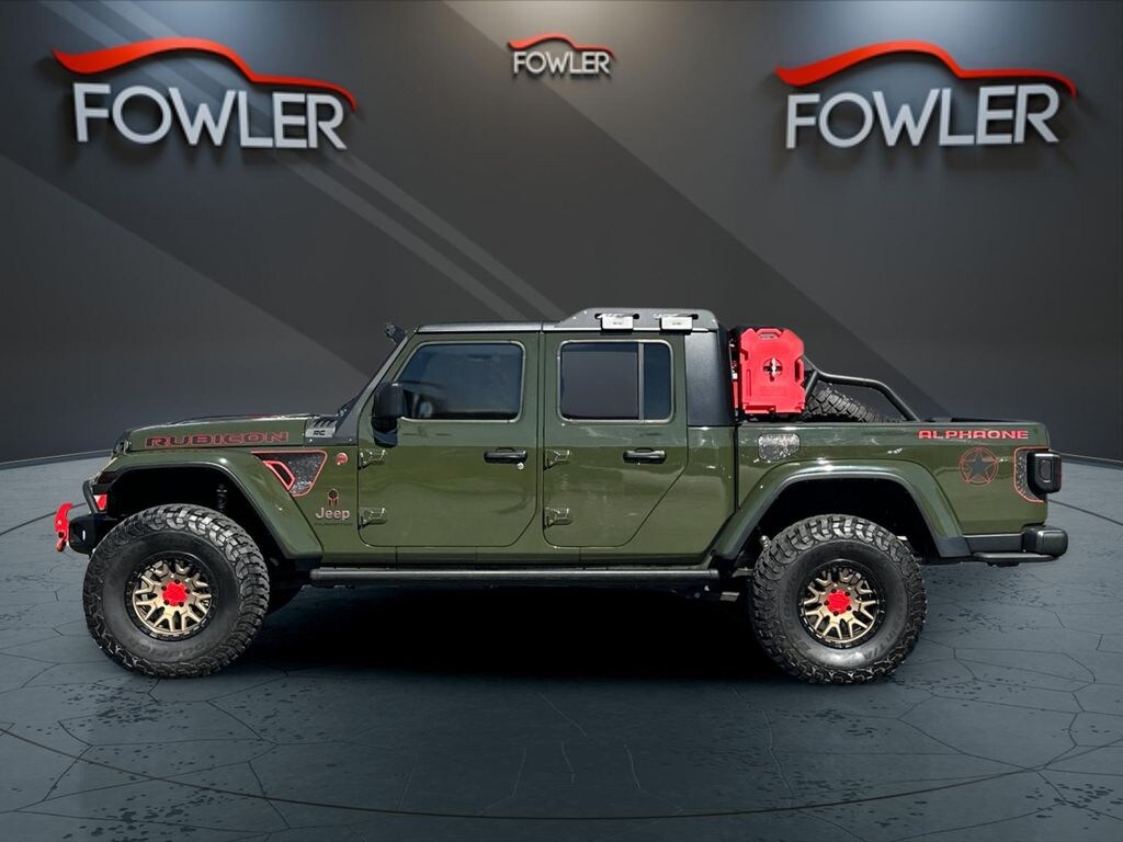 Sarge Green Clearcoat 2022 Jeep Gladiator Rubicon 4WD 8-Speed Automatic 3.6L V6 24V VVT 240 Amp Alternator, 4-Wheel Disc Brakes, 4.10 Rear Axle Ratio, 700 Amp Maintenance Free Battery, 9 Speakers, 97 MPH Vehicle Max Speed Calibration, ABS brakes, Air Conditioning, Alloy wheels, AM/FM radio: SiriusXM, Apple CarPlay/Android Auto, Auto-dimming Rear-View mirror, Automatic temperature control, Auxiliary Switch Group, Auxiliary Switches, Black 3-Piece Hard Top, Body Color Fender Flares (2-Piece), Brake assist, Class IV Receiver Hitch, Compass, Corning Gorilla Glass, Delay-off headlights, Driver door bin, Driver vanity mirror, Dual front impact airbags, Dual front side impact airbags, Electronic Stability Control, Emergency communication system: SiriusXM Guardian, Freedom Panel Storage Bag, Front anti-roll bar, Front Bucket Seats, Front Center Armrest w/Storage, Front dual zone A/C, Front fog lights, Front License Plate Bracket, Front reading lights, Fully automatic headlights, Garage door transmitter, Heated door mirrors, Heavy-Duty Engine Cooling, Illuminated entry, Integrated roll-over protection, Leather steering wheel, Low tire pressure warning, MOPAR All-Weather Slush Mats, MOPAR Grab Handle Kit, MOPAR Satin Black Grille, MOPAR Spray In Bedliner, Navigation System, Occupant sensing airbag, Outside temperature display, Panic alarm, ParkView Rear Back-Up Camera, Passenger door bin, Passenger vanity mirror, Performance Suspension, Power door mirrors, Power steering, Power windows, Premium Cloth Low-Back Bucket Seats, Quick Order Package 24R, Radio data system, Radio: Uconnect 4C Nav w/8.4" Display, Rear anti-roll bar, Rear reading lights, Rear Sliding Window, Rear Window Defroster, Remote keyless entry, Remote Start System, Security system, Speed control, Split folding rear seat, Steering wheel mounted audio controls, Tachometer, Telescoping steering wheel, Tilt steering wheel, Traction control, Trailer Hitch Zoom, Trailer Tow Package, Trip computer, Variably intermittent wipers, Voltmeter, Wheels: 17" x 7.5" Granite Crystal Aluminum, Wheels: 17" x 7.5" Polished Black Aluminum.