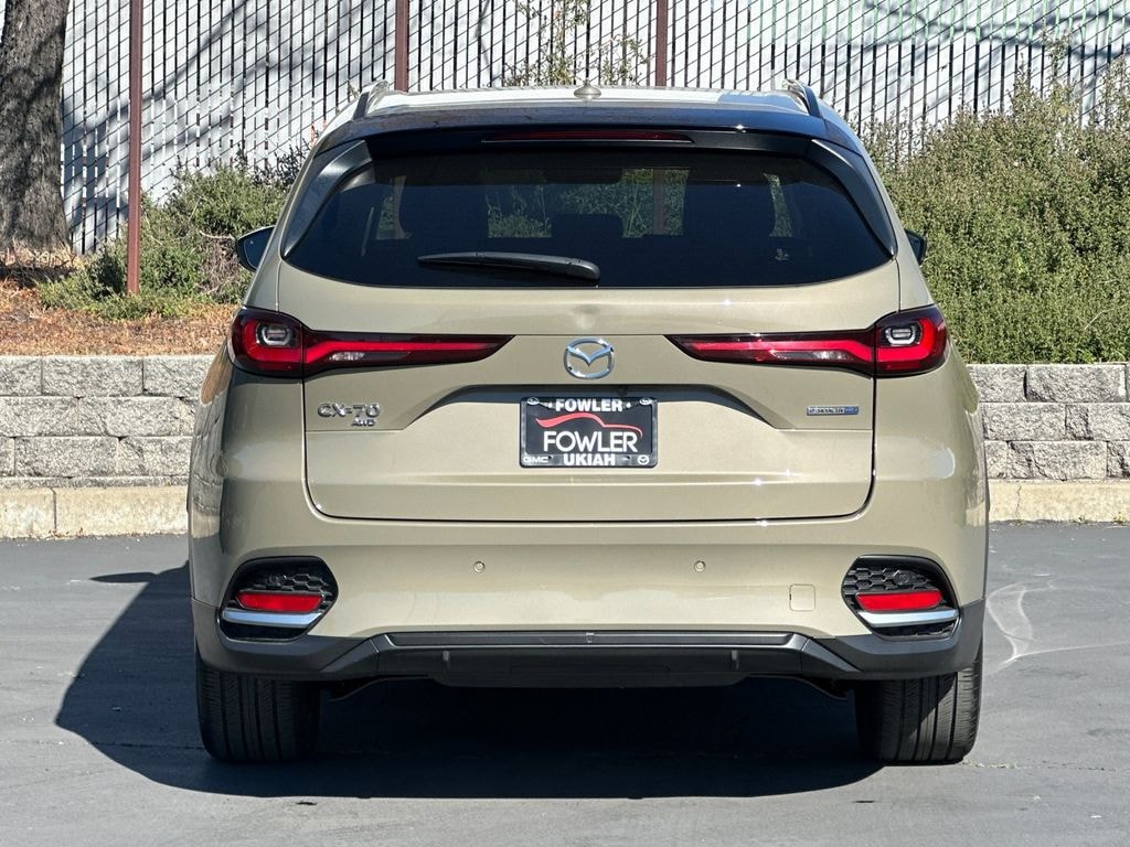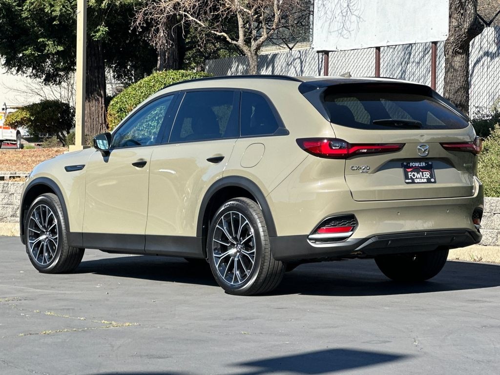 Tan 2025 Mazda CX-70 PHEV Premium AWD 8-Speed Automatic 2.5L I4 DOHC 16V LEV3-SULEV30 12 Speakers, 4-Wheel Disc Brakes, ABS brakes, Air Conditioning, Alloy wheels, AM/FM radio: SiriusXM, Auto High-beam Headlights, Auto-dimming Rear-View mirror, Automatic temperature control, Brake assist, Bumpers: body-color, Compass, Delay-off headlights, Driver door bin, Driver vanity mirror, Dual front impact airbags, Dual front side impact airbags, E911 Automatic Emergency Notification, Electronic Stability Control, Emergency communication system: MAZDA CONNECT, Exterior Parking Camera Rear, Four wheel independent suspension, Front anti-roll bar, Front Bucket Seats, Front Center Armrest w/Storage, Front dual zone A/C, Front reading lights, Fully automatic headlights, Garage door transmitter: HomeLink, Heads-Up Display, Heated door mirrors, Heated Front Bucket Seats, Heated front seats, Illuminated entry, Infotainment System Voice Command, Knee airbag, Leather Seat Trim, Leather Shift Knob, Leather steering wheel, Low tire pressure warning, Mazda Connected Services, Mazda Online Navigation, Memory seat, Navigation system: MAZDA CONNECT, Occupant sensing airbag, Outside temperature display, Overhead airbag, Overhead console, Pandora Internet Radio Integration, Panic alarm, Passenger door bin, Passenger vanity mirror, Power door mirrors, Power driver seat, Power Liftgate, Power moonroof, Power passenger seat, Power steering, Power windows, Radio Broadcast Data System Program Information, Radio data system, Radio: AM/FM w/Bose Premium Audio Sound System, Rain sensing wipers, Rear air conditioning, Rear anti-roll bar, Rear reading lights, Rear seat center armrest, Rear window defroster, Rear window wiper, Remote keyless entry, SMS Text Msg Audio Delivery & Reply, Speed control, Speed-sensing steering, Split folding rear seat, Spoiler, Steering wheel mounted audio controls, Tachometer, Telescoping steering wheel, Tilt steering wheel, Traction control, Trip computer, Turn signal indicator mirrors, Variably intermittent wipers, Wheels: 21" x 9.5J Aluminum Alloy.