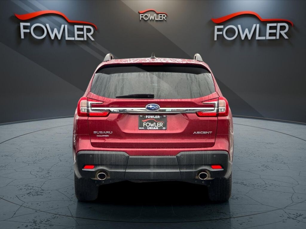Certified. Crimson Red Pearl 2024 Subaru Ascent Premium AWD Lineartronic CVT 2.4L 4-Cylinder DOHC 16V Subaru Certified Pre-Owned Certified, 3rd row seats: bench, 4-Wheel Disc Brakes, 6 Speakers, ABS brakes, Air Conditioning, Alloy wheels, AM/FM radio: SiriusXM, Auto High-beam Headlights, Auto-Dimming Rear View Compass Mirror w/HomeLink, Automatic temperature control, Axle Ratio: 4.44, Brake assist, Bumpers: body-color, Convenience Package, Delay-off headlights, Driver door bin, Driver vanity mirror, Dual front impact airbags, Dual front side impact airbags, Electronic Stability Control, Emergency communication system: STARLINK Safety and Security (Subscription Required), Exterior Parking Camera Rear, Four wheel independent suspension, Front anti-roll bar, Front Bucket Seats, Front Center Armrest, Front dual zone A/C, Front reading lights, Fully automatic headlights, Heated door mirrors, Heated Front Bucket Seats, Heated front seats, Illuminated entry, Keyless Access w/Push-Button Start, Knee airbag, Leather Shift Knob, Leather steering wheel, Low tire pressure warning, Occupant sensing airbag, Outside temperature display, Overhead airbag, Overhead console, Panic alarm, Passenger door bin, Passenger vanity mirror, Power door mirrors, Power driver seat, Power Rear Gate w/Automatic Close & Height Memory, Power steering, Power windows, Radio data system, Radio: Subaru STARLINK 11.6" Multimedia Plus System, Rear air conditioning, Rear anti-roll bar, Rear reading lights, Rear window defroster, Rear window wiper, Reclining 3rd row seat, Remote keyless entry, Reverse Automatic Braking (RAB) System, Security system, Speed control, Speed-sensing steering, Spill Resistant Coated Cloth Upholstery, Split folding rear seat, Spoiler, STARLINK/Apple CarPlay/Android Auto, Steering wheel mounted audio controls, Tachometer, Telescoping steering wheel, Tilt steering wheel, Traction control, Trip computer, Turn signal indicator mirrors, Variably intermittent wipers, Wheels: 18" x 7.5 J Gray Alloy w/Machine Finish.