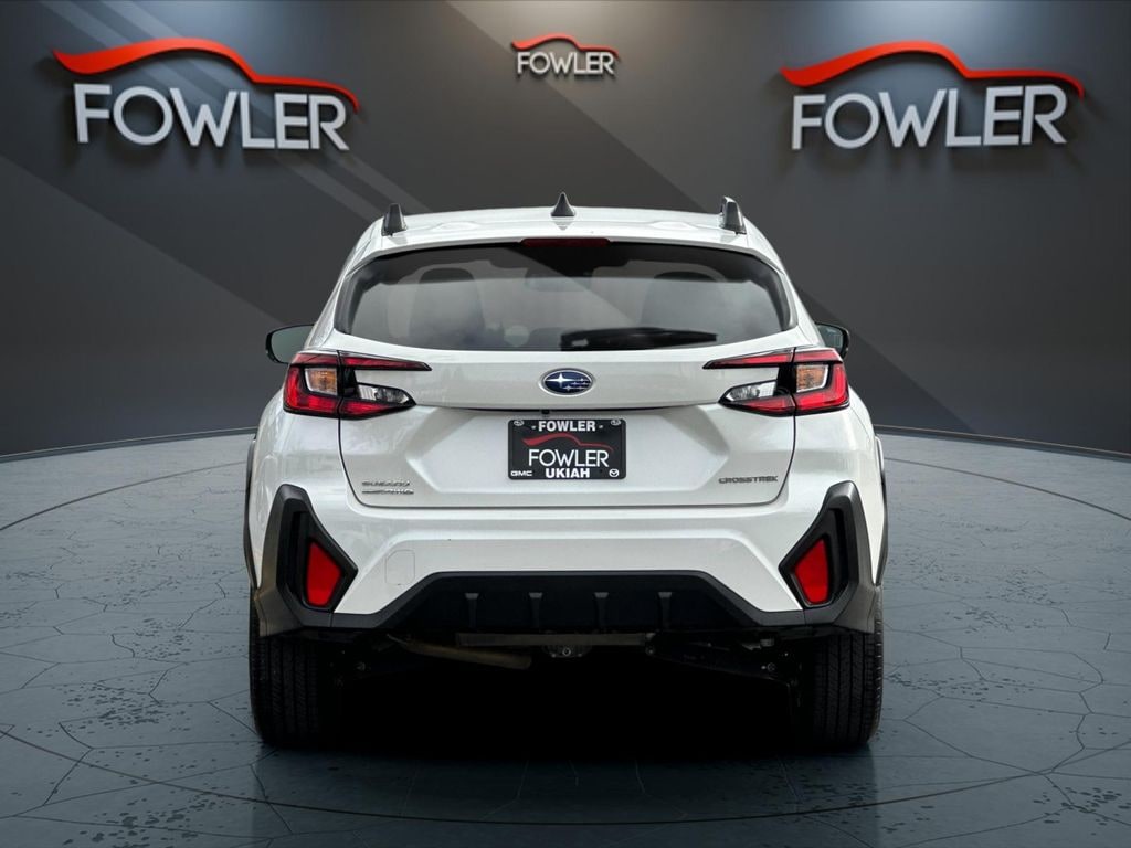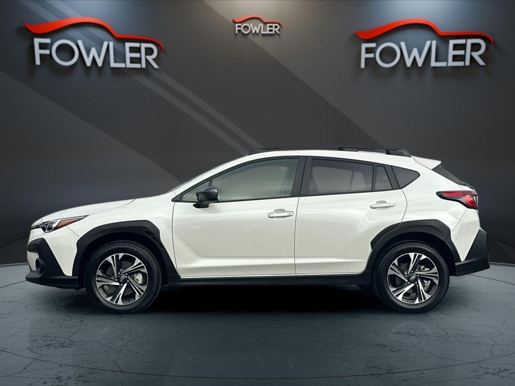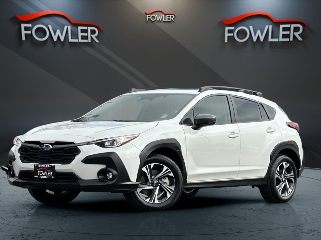 Certified. Crystal White Pearl 2024 Subaru Crosstrek Premium AWD Lineartronic CVT 2.0L 4-Cylinder DOHC 16V Subaru Certified Pre-Owned Certified, 10-Way Power Driver's Seat, 3.90 Axle Ratio, 4-Wheel Disc Brakes, 6 Speakers, ABS brakes, Air Conditioning, All-Weather Package, Alloy wheels, AM/FM radio: SiriusXM, Anti-whiplash front head restraints, Auto High-beam Headlights, Automatic temperature control, Blind Spot Detection w/Rear Cross-Traffic Alert, Brake assist, BSD/RCTA & Moonrf & All Weather Pkg & Pwr Dr. Seat, Bumpers: body-color, Driver door bin, Driver vanity mirror, Dual front impact airbags, Dual front side impact airbags, Electronic Stability Control, Emergency communication system: STARLINK Safety and Security (Subscription Required), Exterior Parking Camera Rear, Four wheel independent suspension, Front anti-roll bar, Front Bucket Seats, Front Center Armrest, Front dual zone A/C, Front fog lights, Front reading lights, Fully automatic headlights, Heated Exterior Mirrors, Heated Front Seats, Heated Wipers, Illuminated entry, Knee airbag, Low tire pressure warning, Occupant sensing airbag, Outside temperature display, Overhead airbag, Overhead console, Panic alarm, Passenger door bin, Passenger vanity mirror, Power door mirrors, Power Moonroof, Power steering, Power windows, Premium Cloth Upholstery, Radio data system, Radio: Subaru STARLINK 11.6" Multimedia Plus Sys, Rear anti-roll bar, Rear seat center armrest, Rear window defroster, Rear window wiper, Remote keyless entry, Security system, Speed control, Speed-sensing steering, Split folding rear seat, Spoiler, STARLINK/Apple CarPlay/Android Auto, Steering wheel mounted audio controls, Tachometer, Telescoping steering wheel, Tilt steering wheel, Traction control, Trip computer, Turn signal indicator mirrors, Variably intermittent wipers, Wheels: 17" x 7.0J Dark Gray Aluminum Alloy.
